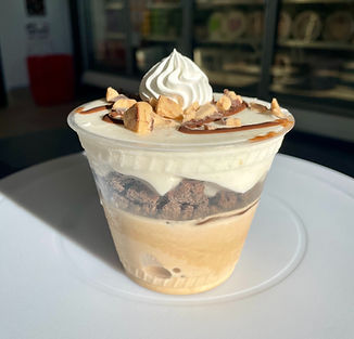 Available in four delicious flavors - Traditional, Salted Caramel, Peanut Butter Lovers, and Coffee Toffee - each cake features layers of soft-serve ice cream, cookie crumbs or waffle pieces, and a sweet, creamy buttercream topping. Every flavor is thoughtfully made to bring the perfect balance of texture and taste.